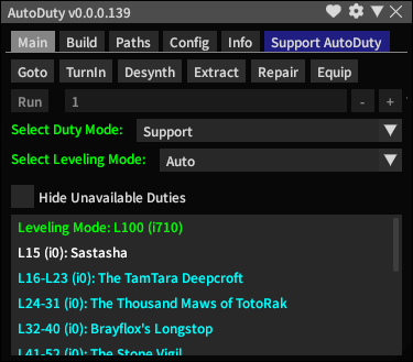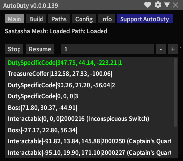 Creating paths is also supported and easily accomplished within AutoDuty by using the Build tab at the top. For path status, please refer to the pinned spreadsheet in the AutoDuty channel of the support Discord.