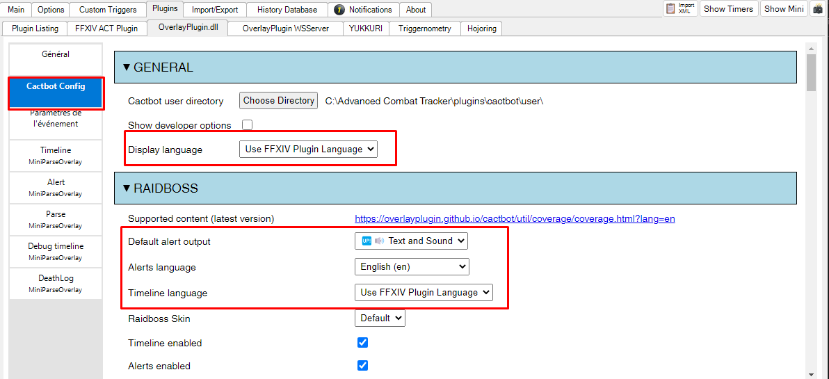 - Cactbot: go to https://github.com/OverlayPlugin/cactbot/releases and download the last cactbot-[version].zip unlock, extract it and place it in your plugins folder