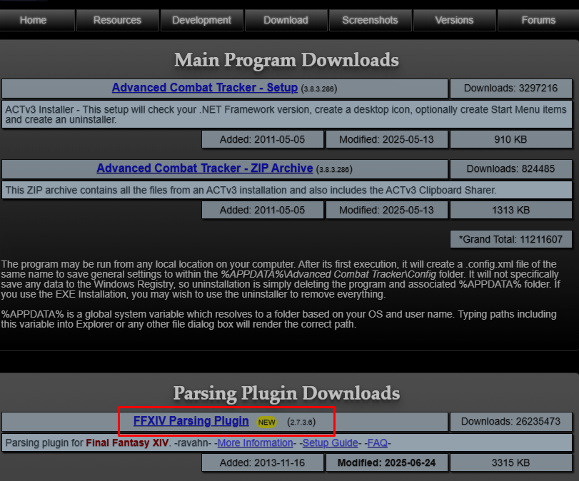 - FFXIV ACT: go to https://advancedcombattracker.com/download.php and download FFXIV Parsing Plugin