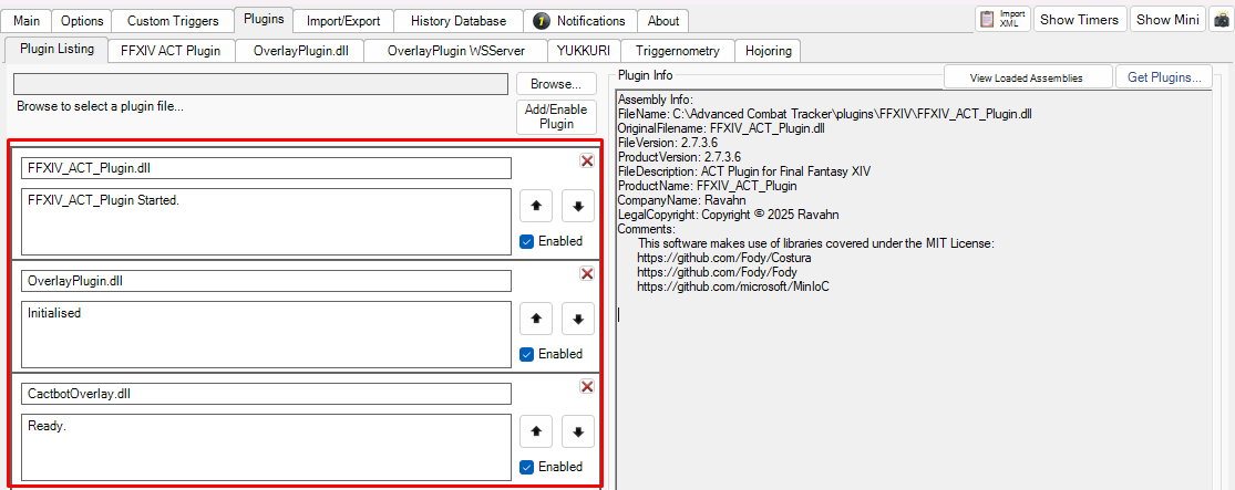 Now go to your plugins tab in ACT and we need to add each plugins into ACT