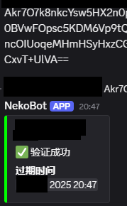 7) Paste the text in the discord channel and NekoBot will validate your auth to the plugin for 15 days
